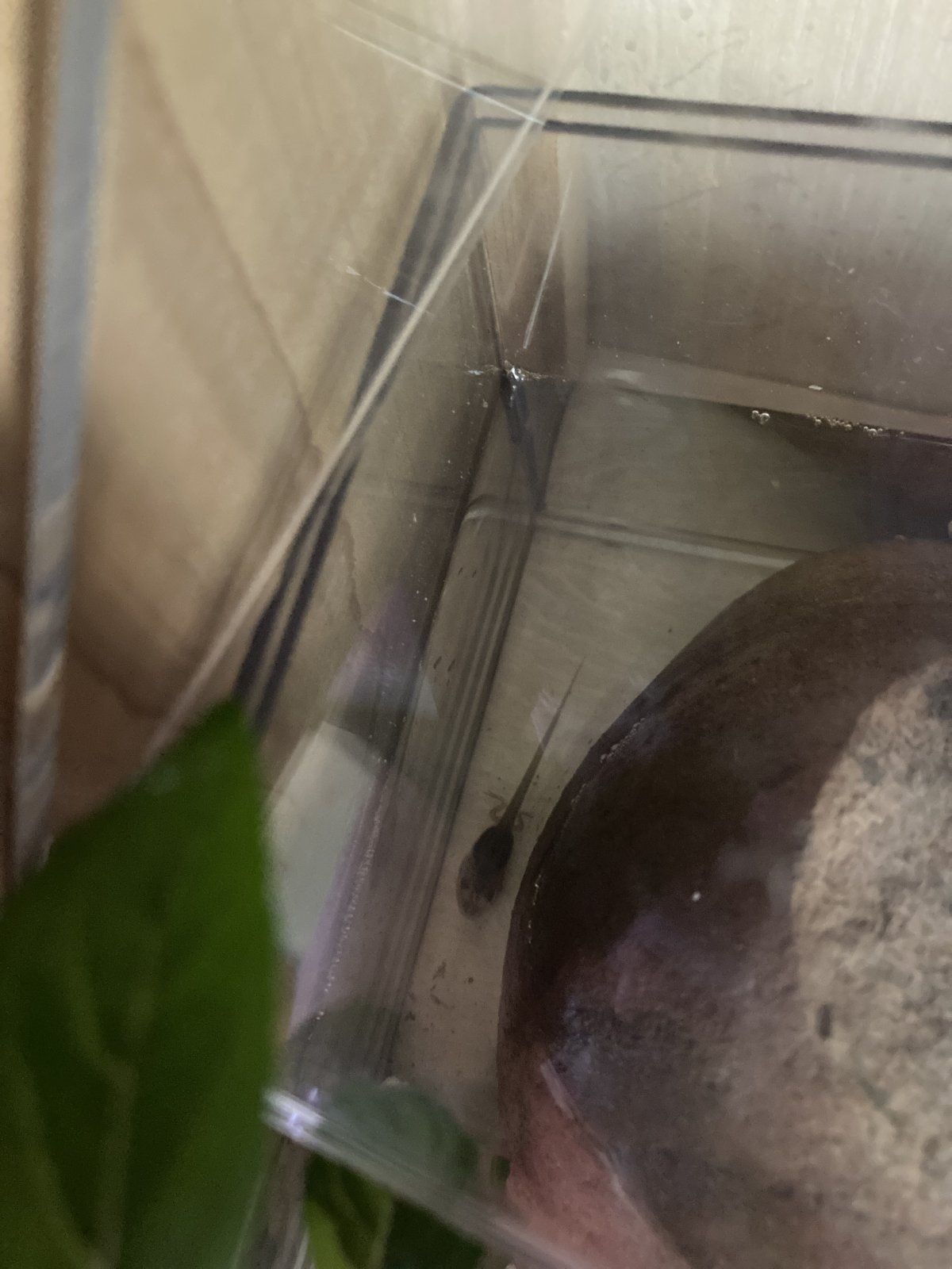 So after a few weeks my tadpoles have started showing leg growth. And today when I went to feed them the largest one had all four legs! S/he has a tail still but it’s all so exciting to see how they change