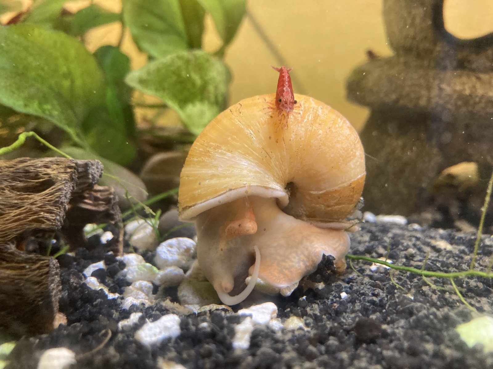gwand said: I have a similar pic with one of my neocardinia and a mystery snail. View attachment 377243 Click to expand... dang that is a good photo!!