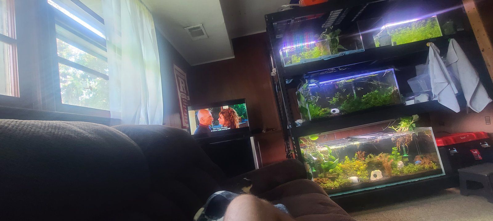 I put a blackout curtain on the window behind my tank and it really helped reduce algae growth. You can also use a matte finish thin plastic material on the back of the tank, which has the benefit of making the fish more visible.Quick question if you don't mind. I have a window about 5 feet from my tanks and while they aren't getting direct sunlight there is definitely ambient light coming through. My algae isn't out of control but wondering if you think it'd be a good idea to black out the window or if I should reduce the twin star S light to like 6 hours a day?