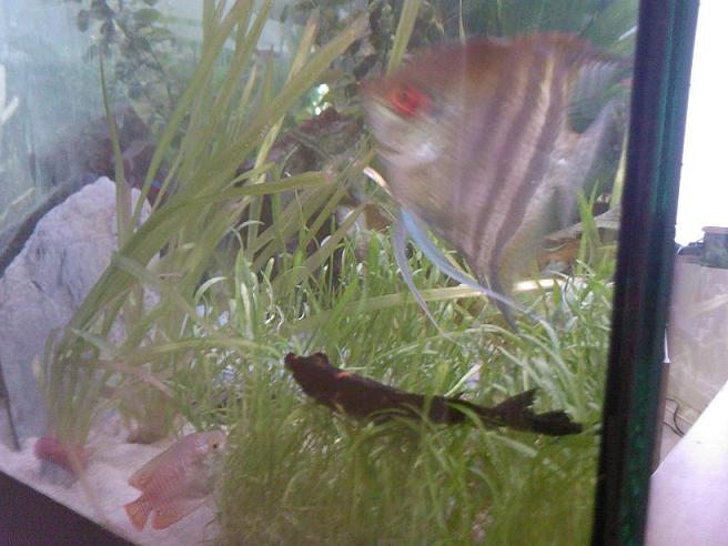 Tank inhabitants: 1 other angel, 1 dwarf gourami, 10 cardinal tetras, 2 kuhli loaches