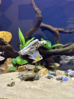 Tank is 300+ litres, parameters are good i have tested them, temp is good, other fish in the tank like Cory's and Tetra's, Gouramis', Ram's, a Juvenille discuss, are fully ok and they eat normally, i use Sability on each water change, and Prime every 48 hours for them, my Eheim canister is clean it is at 5% dirty. Tank started since a month and a half, and the issue happened since like 3-4 days after the water change.