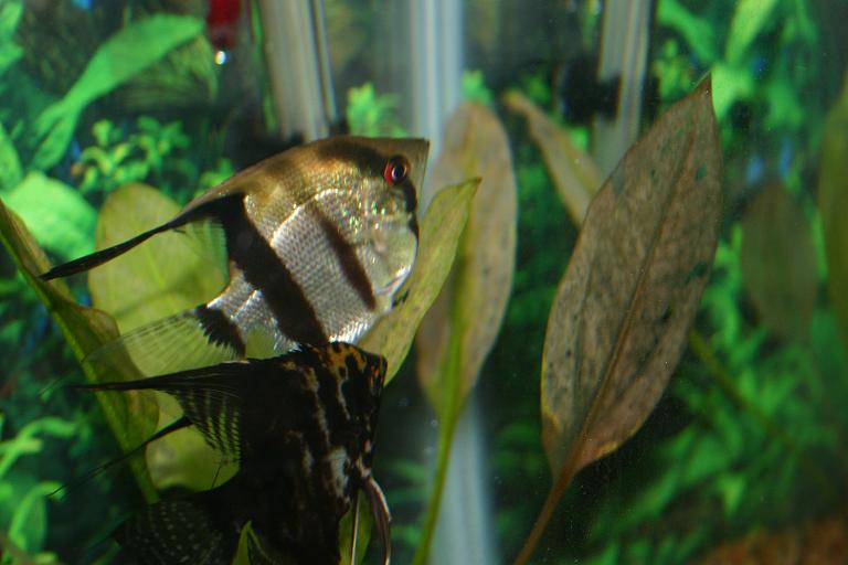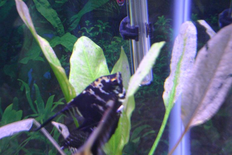Ok, heres some recently taken pictures of my angelfish pair, first spawn attempt. The lighting isnt very good and I didnt wanna disturb them very much, so these pictures suck pretty bad, but I thought I'd take some now, and take some later tonight (if they are still there) once it gets dark.