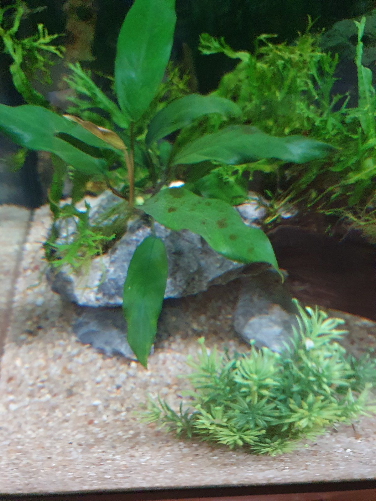 I have a couple of Anubias plants and they have started to show some dark patches on a few leaves. I am not sure what it is and if I should do something about it. I have no co2 injection and use recommended amount of Flourish once a week.