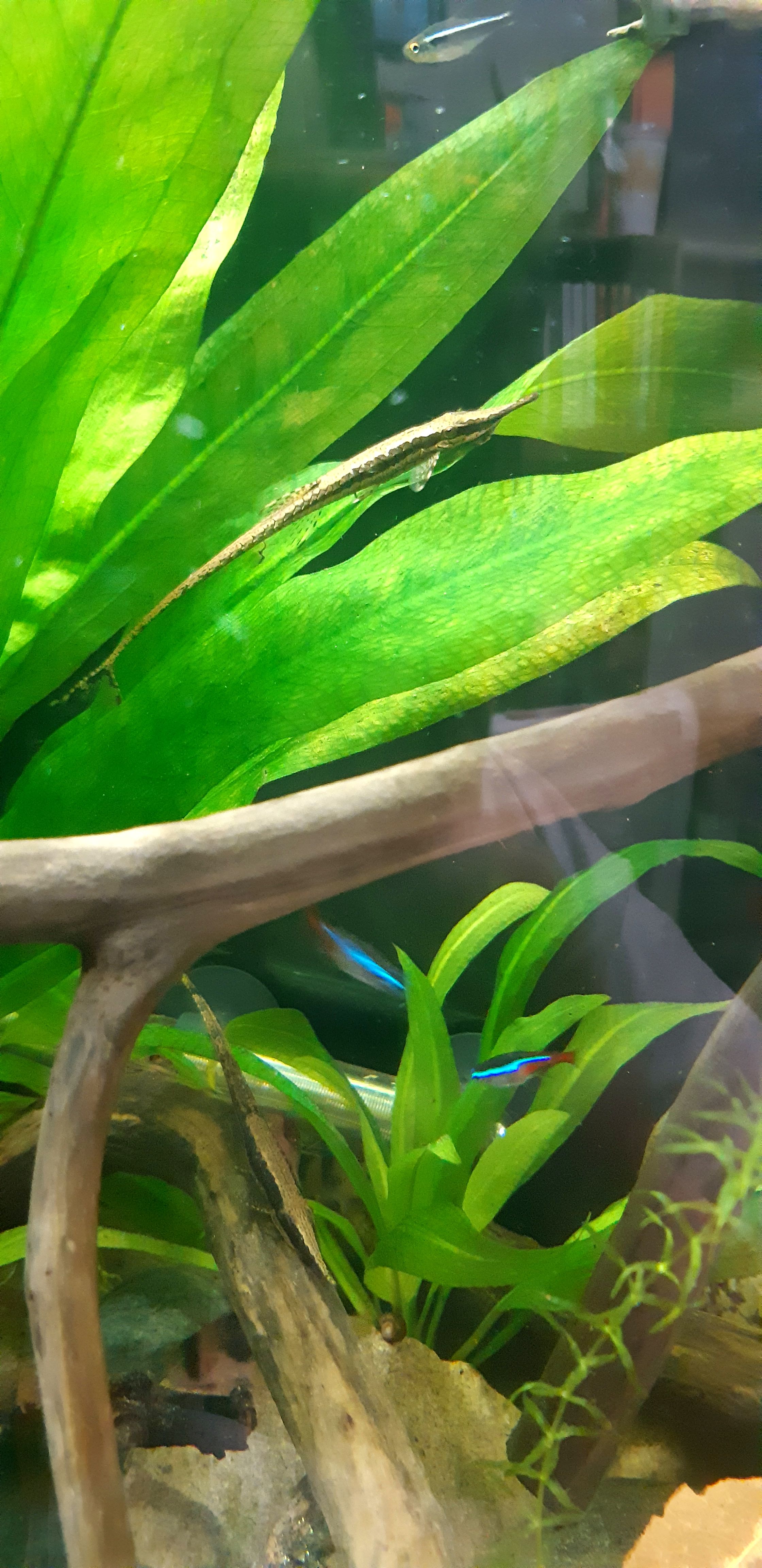 I know theyre a difficult fish to keep, but wondering how many others keep them. I love these fish, so neat. I mean they dont do a whole lot, by day they sit on driftwood and look like a stick, but at night theyre always out cleaning my glass, hopping around from plant to plant and branch to branch. So fun trying to find them. And if they get annoyed with another fish or shrimp, they swat it with their long tails lol