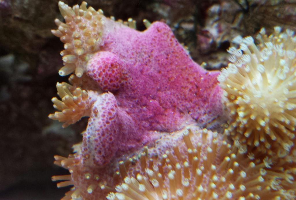 Bought this toadstool off a guy yesterday - I saw that it had a pinky colouration when it wasn't extended, but today its fully out but the pink patch has gone a sort of coraline algae colour. Its not coraline as it's not hard or doesn't feel raised. From what I can see its just a change of colour.
