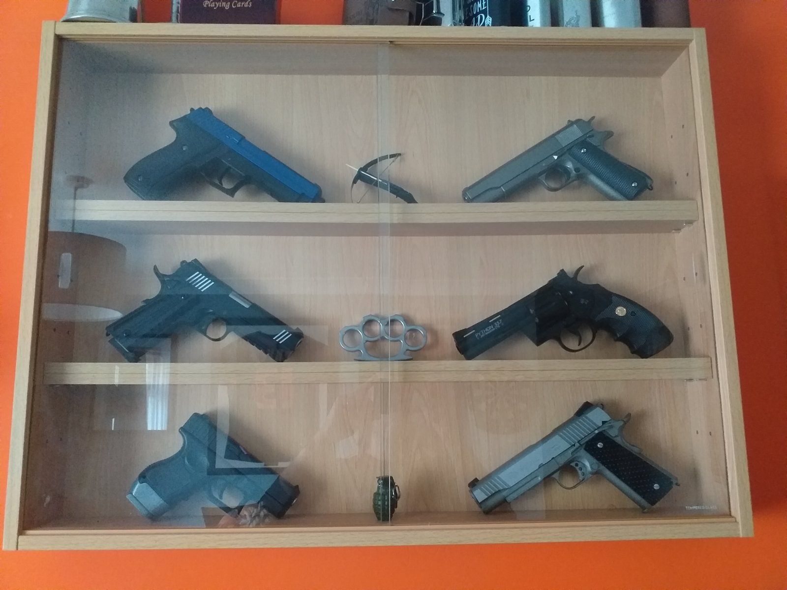 The revolver (python .357) and silver tactical 1911 blowback both fire .177 steel bbs using co2.