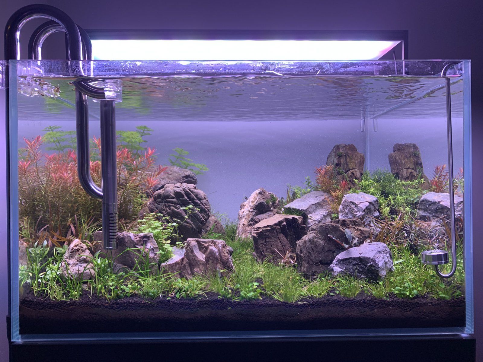 Only major thing I did tonight was trim my H'ra on the left and plant the stems at the back right, I got a Ludwigia type and it is growing but super slow so wanted to over plant the H'ra to help it stave off algae as some of the lower leaves have diatoms.