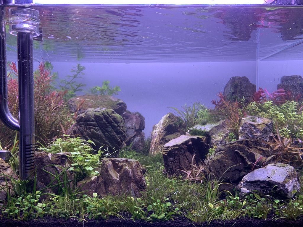 - More clean up crew - one thing I've not addressed so far is that I've lost quite a few shrimp. At one point I had 20 Amano in there and when I emptied the tank to do this scape I only found 6, the good news is they are now thriving and much much more active than before. I think some of the issue I had is that they came from a shop in a softwater area so I'm going to go to a much more local store in the hope that they will thrive being that they are in the same water. My blue velvet shrimp are no where to be seen either. I am also wondering if what ever my wood was doing to the water before affected this? I'm considering adding some nerite snails too if they had them.