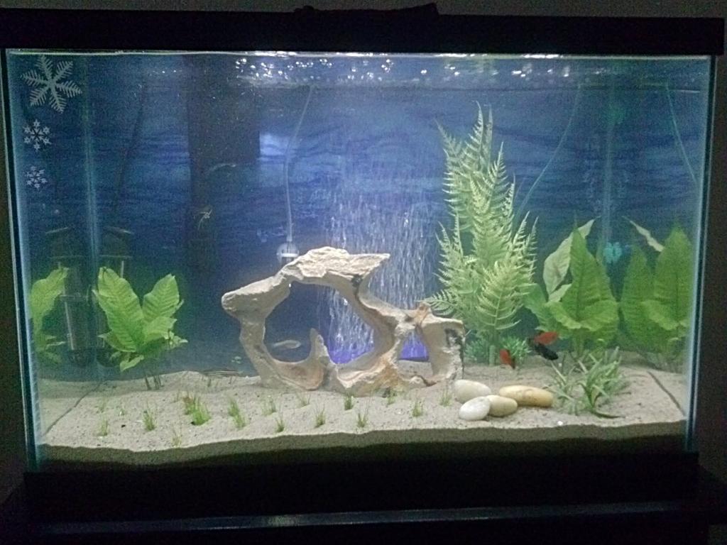 Hey gotta few questions first one is what are some good tall plants i could plant in the back of this tank and should i keep that rock in there cause i would like to attach some plants onto it or should get some driftwood. Also I have some dwarf hairgrass in my tank but how long with that take to grow a full carpet. I have co2 running and liquid fertilizer. Anybody have any suggestion of what looks good and what i shoulddo with this tank. Recently i changed my tank to sand over from gravel cause the hairgrass was coning out so easily. Oh plus i know I know I got a aquaclear 30 for christmas dont ask how I know ha