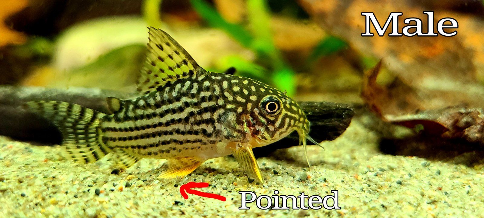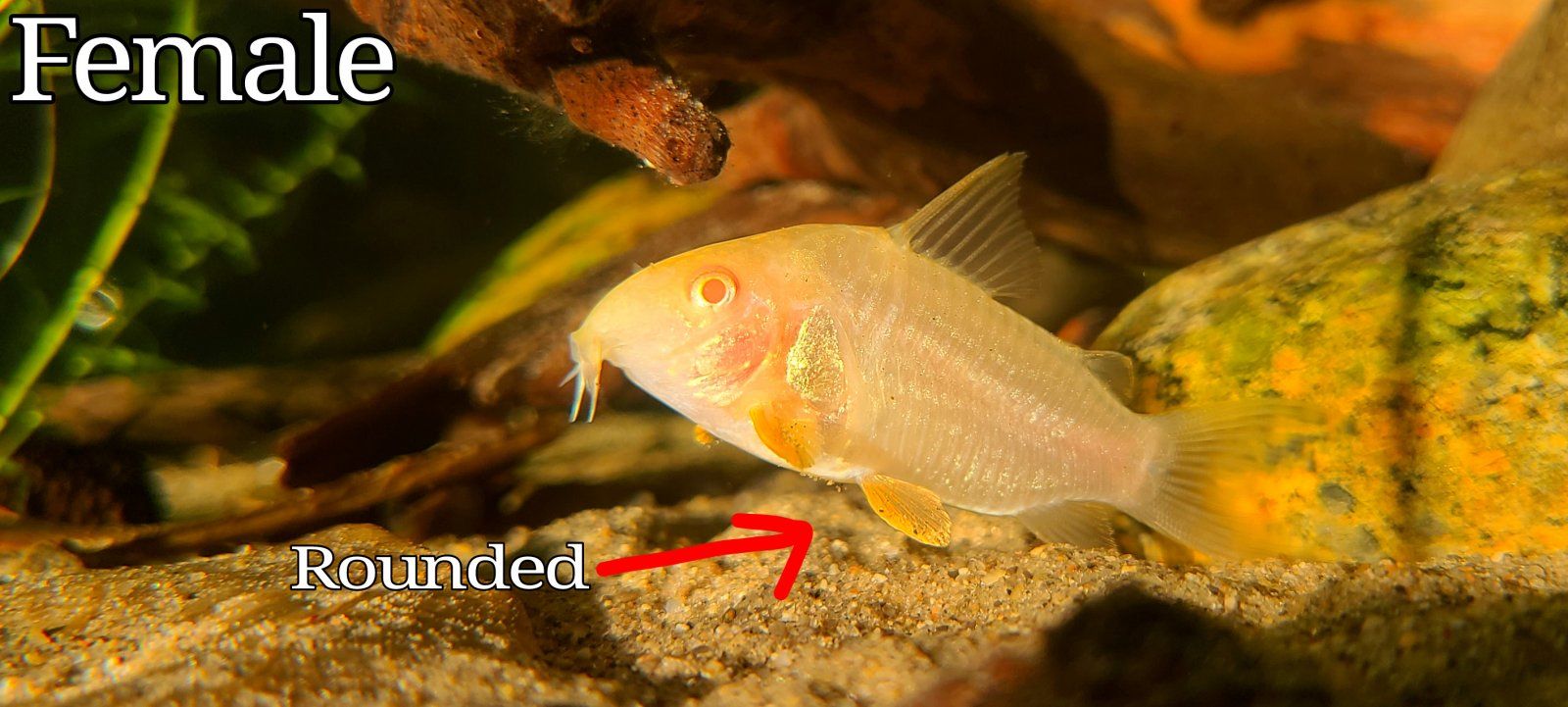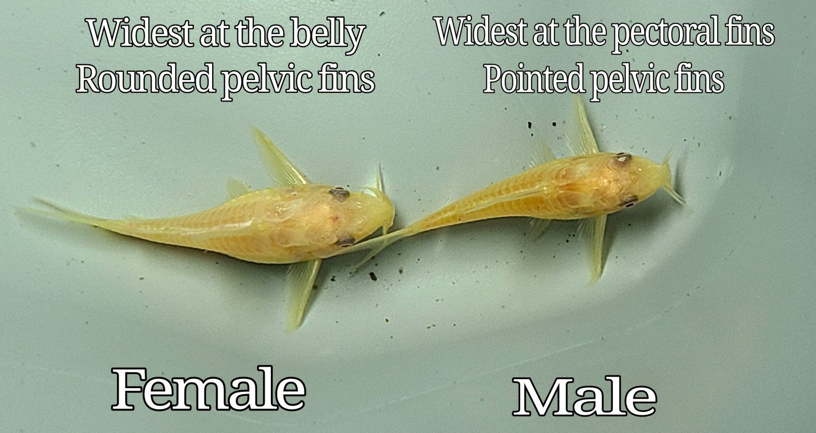 Females will be larger and fatter when mature, and pelvic fins will be rounded.