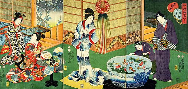 down thus bringing free time for the hobby, also a hobby called kingyo-sukui (goldfish scooping)