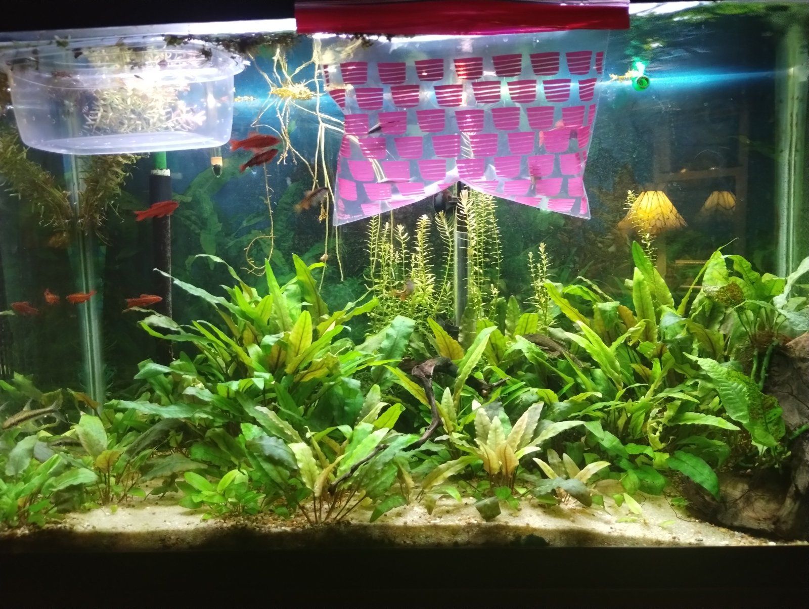 It took forever to get the few fish out! I didn't even see one of my plecs, I assume it was holding onto a piece of decor or something (all items immediately went into some more water in case this was true). I had to remove absolutely everything in the tank before I even had a chance at the SAEs. Unfortunately, one hopped out onto the floor and lost quite a few scales, I hope it will make it.