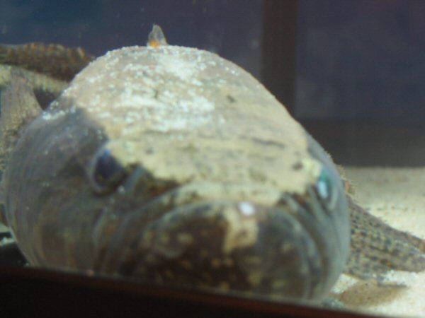 well here at last this is eric my water cow goby he is a beast will eat anything and i mean anything the lfs said he would be fine with anything bigger than him well after about 2 hours in the tank he made light work of my 10 inch silver shark, what couldnt fit in him was just left hanging out his mouth, hence why he is now on his own but i think hes great really grumpy looking sod, but still cant find any info on the net whatso ever.