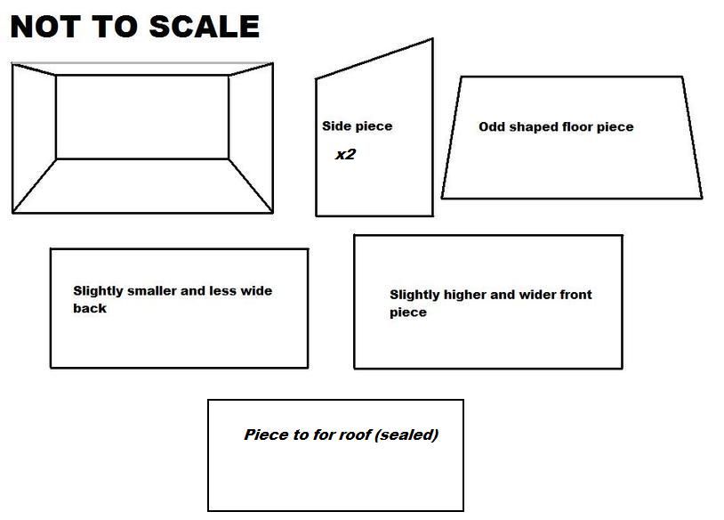These are roughly worked out using a cardboard mock up, so I'm of course worried about the accuracy, especially when it comes to making the side pieces and the floor pice as they are not rectangular. I have seen people on this forum use CAD programs to come up with schematics for tanks - is there anyone out there who can help me with this?