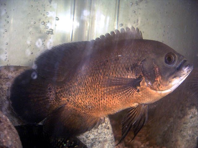Well its been a while since I have been on here, so I thought i should come back and post some pictures of my Oscar and Jack Dempsey. Oddly enough their names are Oscar and Jack. We also have a Pleco named B.J. Dont ask. ANYWAY I have a few pictures to show. The ones I do have have horrible water marks in them - which i have cleaned off since then. Here's Oscar.