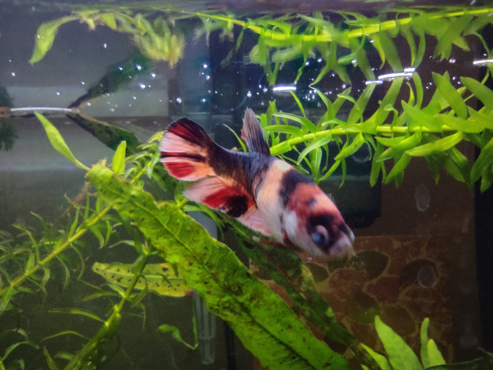 Peppermint Patty is now in the 10 gallon. She's grown and gotten bright since I've gotten her, she's a koi. She looked like something was wrong with her mouth at one point, you couldn't tell by her behavior, she was active and eating. I treated her with kanaplex and she recovered.