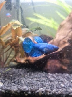 And I'm someone who swore I'd never get a betta! Haha. Love him. Excited about the tank set up I'm making for him! This 12.5g tank he's in now is my old QT/grow out/nursery tank for guppy and cory fry. It's useful for those things, but light is so weak that no live plants last in it for long, even through they thrive in my other tanks: