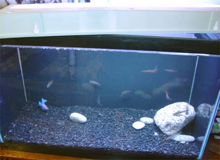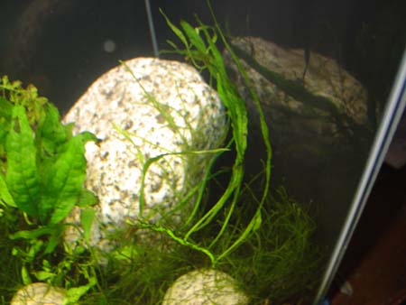 The fish swimming around are 1 male betta, and a small school of white cloud minnows and harlequin rasboras (yes this is going to be an asian tank).
