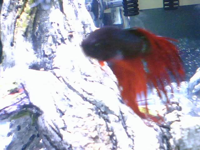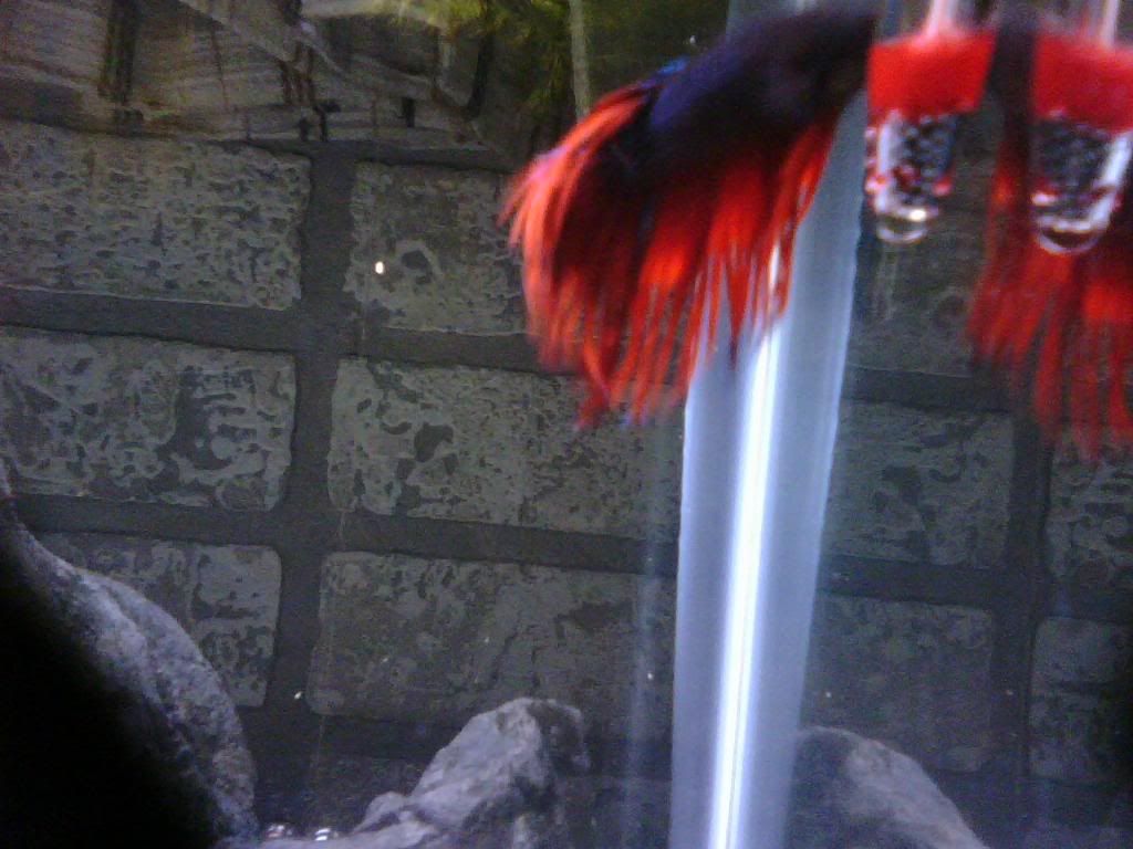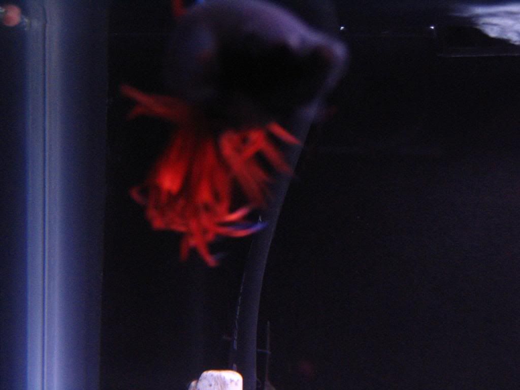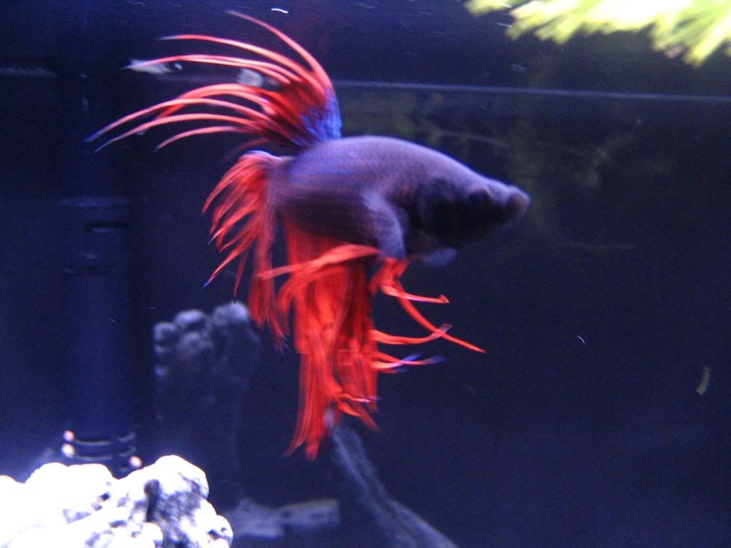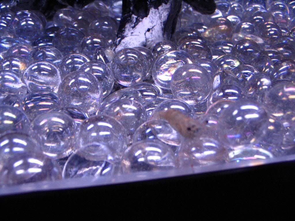 Ok, so i was given a 10g tank that was in dire need of a cleaning after my buddy adopted the lonely black tetra in it. I've set it back up on a small 2x4 frame and threw some christmas lights underneath the tank and added a single layer of glass beads and marbles to reflect the light, and dropped in a nice CT Betta. Anyone have any suggestions on anything else to add to the tank for decor or tank mate?