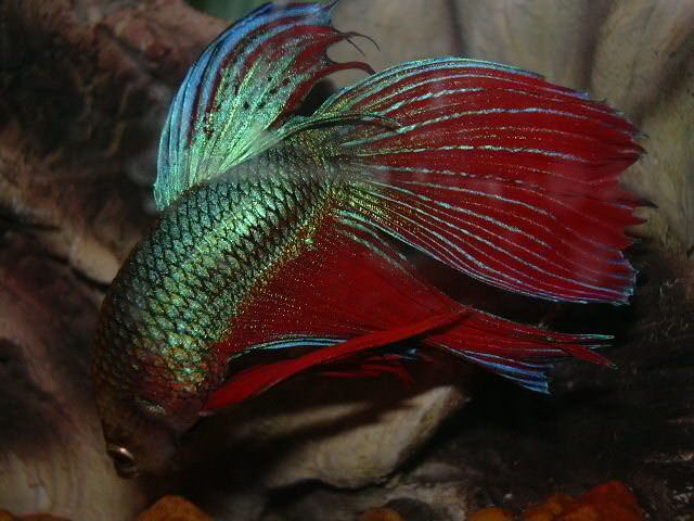 Start putting a mirror in front of him. This will make him agressive when you walk up. Then he will view the camera as the mirror, or anything else you put in front of him.Carolinesugar said:] my lil Prince Charming, only Prince has clear translusent tips on all of his fins!