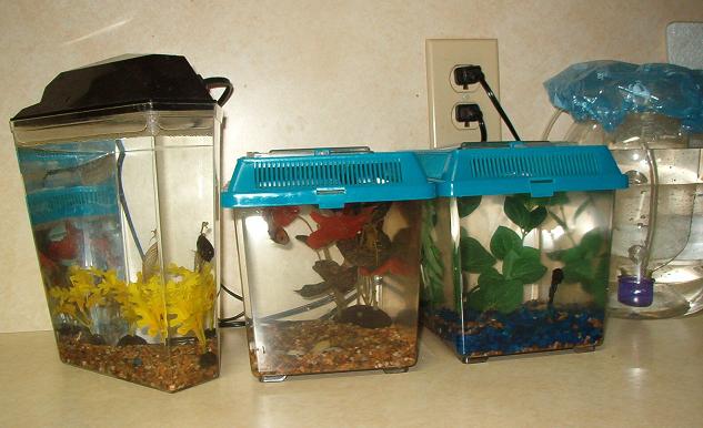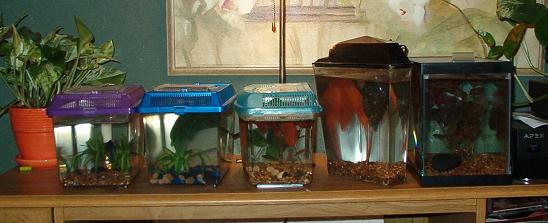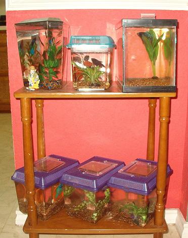 Wow! Great set ups. That is my dream...to have bettas everywhere in very pretty tanks like yours....now, if only I could get the hubby to see things my way.