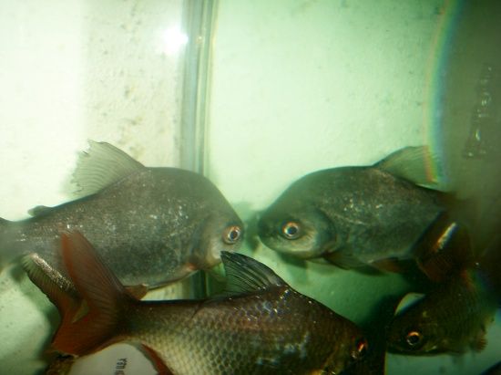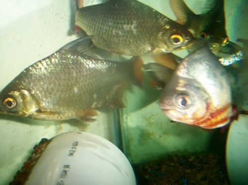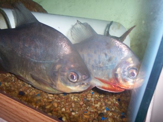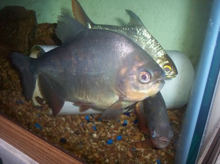 Mongo's about 10 inches, Chongo 8, Bongo about 5 1/2. All of them were given to me from people who bought them at Wal-Mart and stunted the heck out of them. Mongo and Bongo were both in 10gals, Chongo was bought as a piranha and grew up with a large school He's got a chunk out of his tail from those days