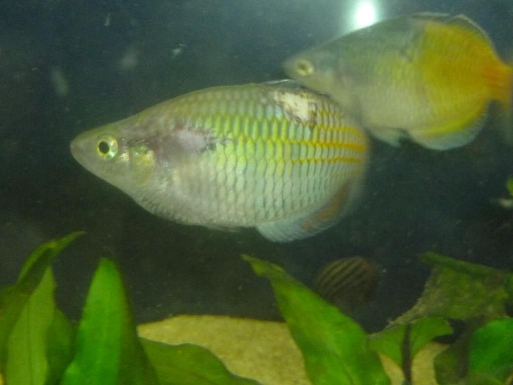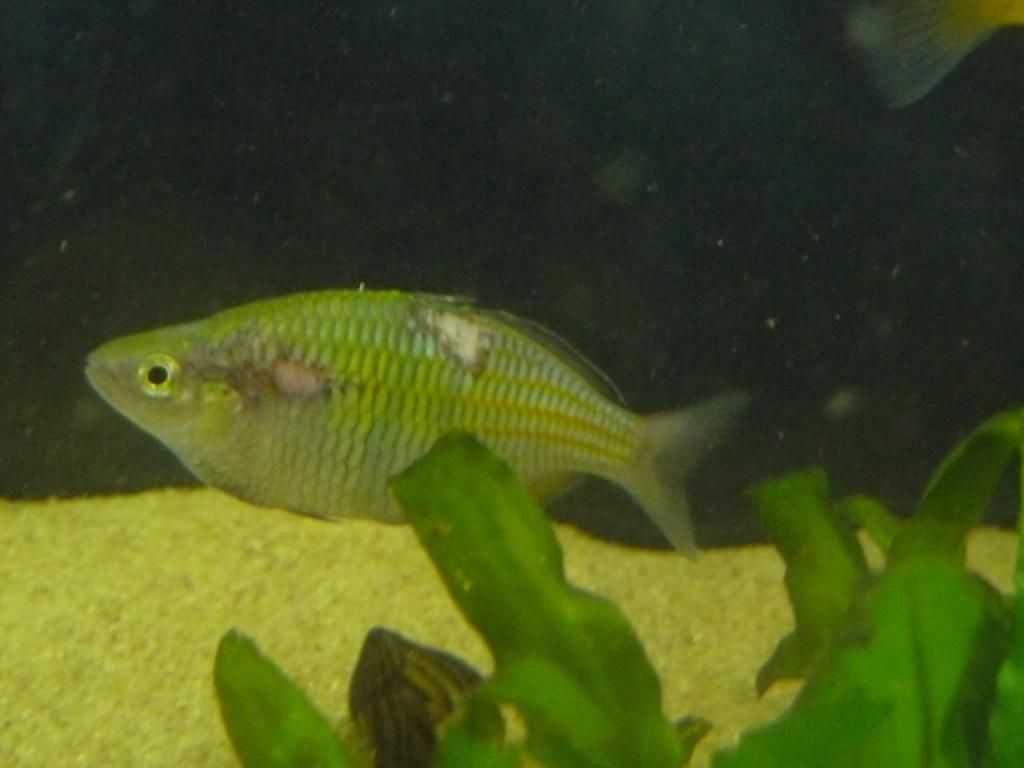 One of my rainbows has lost its scales in two places on one side. I can't figure if it's a bite (he shares the tank with 5 conspecifics and 3 adult archers, which never showed interest in the rainbows so far), an injury or some kind of disease.