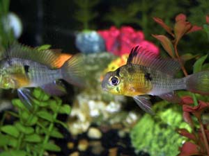 I seen them i my LFS one day. I couldn't decide wether or not by buy them because of their pale and dull color. I've had then for 2 months now and their color is amazing. I also enjoy watching them swim up to the glass when I'm around. They are both 2 inches long. The more colorful of the 2 is a bit smaller and longer, the other is rounder.
