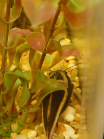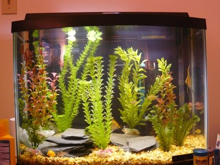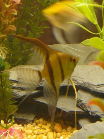 A friend of mine needed to get rid of an angelfish, so I took it on, along with her chocolate catfish that needed a home. Here they are, with a current tank shot.