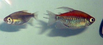 Male and Female Congo Tetra, excuse the darkness of this pic I messed with it to much on the photo package and can't get it back to what it was, my first attempt with a flash to as I normally prefer not to use it.