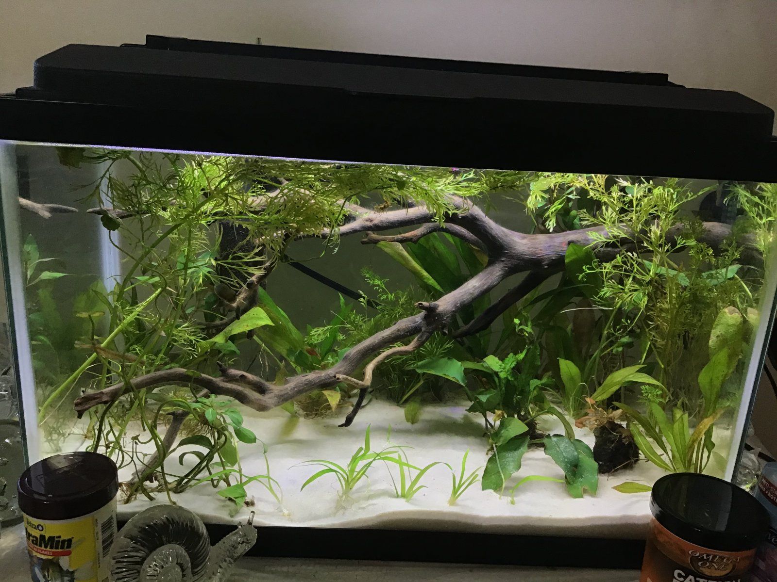 I had one but it got thrown away and I have to find another one lolLooks great, slap a black background on the tank to help your deco stand out more...