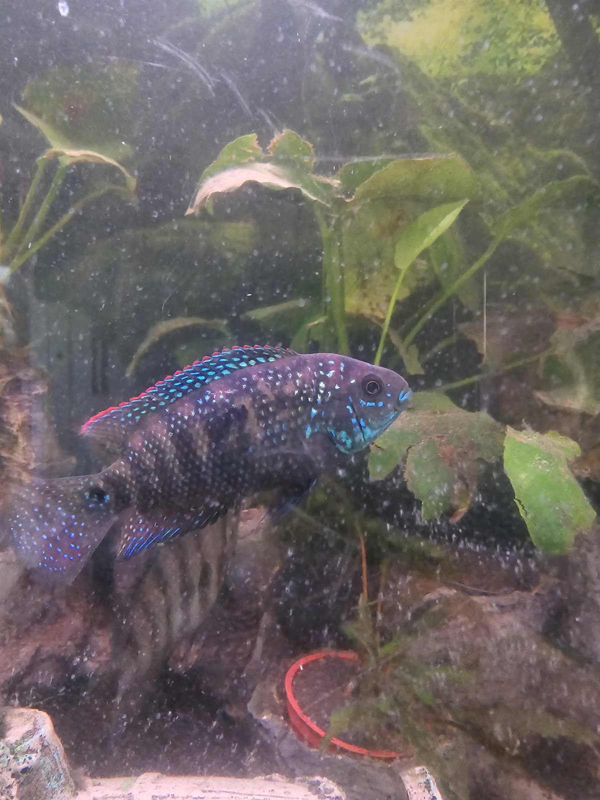 I agree with you that it looks more like a Jack Dempsey. I would give a guess at either a regular Jack or an electric blue Jack Dempsey.Picked this up at the LFS as a texas cichlid but looks to me more like a JD, was wondering what others thought?View attachment 365339