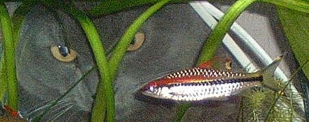 Thanks for the kind words! This is a wider view but I like the close up much better. The fish is a Red Torpedo, I have 4 of them, and the cat is called Earl, after the tea.
