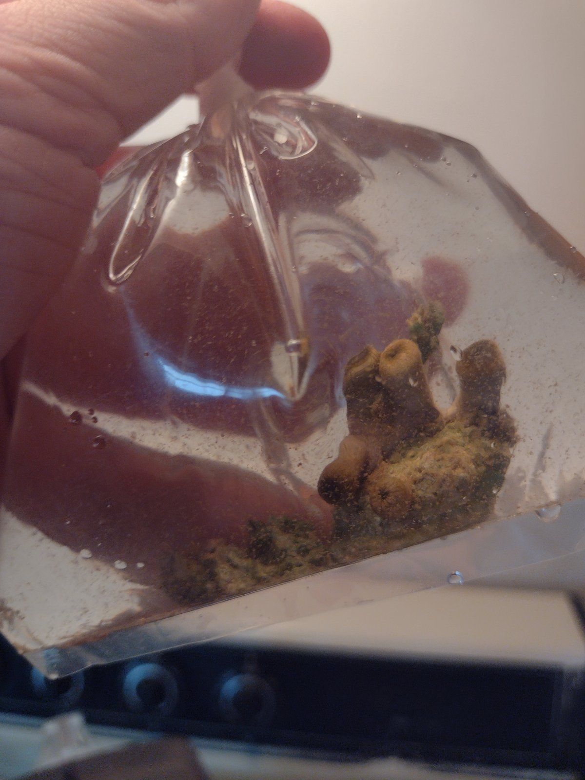 Brown Button Polyps (still closed, but with a hitchhiker macro on top?):