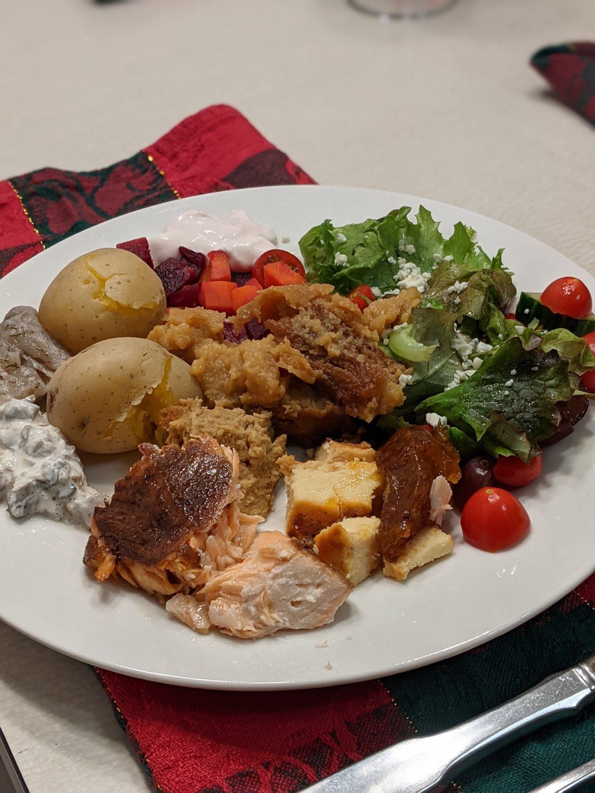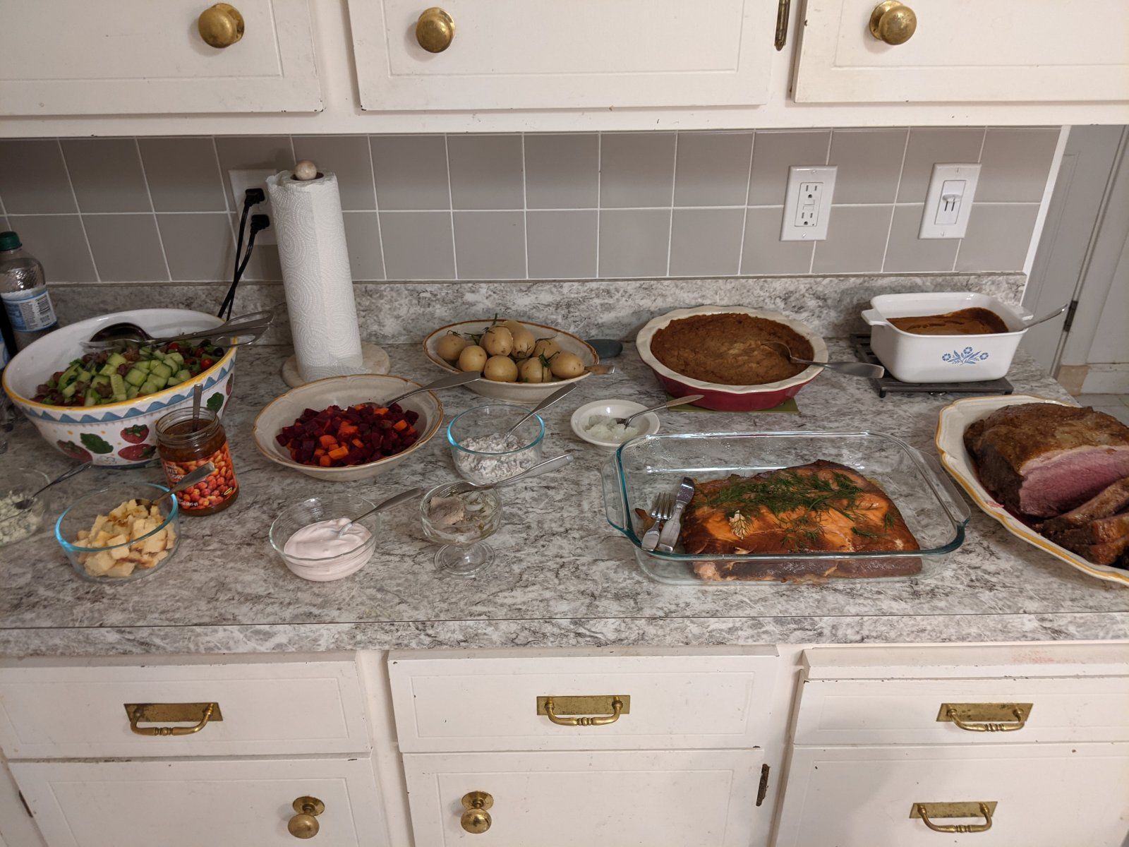 Hubby smoked a salmon all day Wednesday, and then we made a potato casserole and turnip casserole, a roast beef, green salad, beet salad, mushroom salad, and a few other accompanimentssuper yummy!!