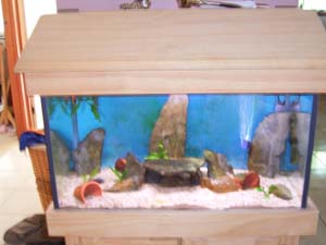 Lenna Fish Crazy Joined Feb 16, 2004 Messages 372 Reaction score 0 Location North Queensland, Australia Jan 31, 2006 #1 I couldn't post these in brackish so here they are: The tank (15g with pool filter sand and slate) Attempted pics of eggs lol (they're the greyish blobs on the side of the leaning rock)