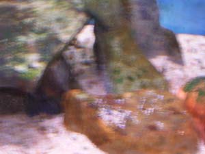 I couldn't post these in brackish so here they are: The tank (15g with pool filter sand and slate) Attempted pics of eggs lol (they're the greyish blobs on the side of the leaning rock)