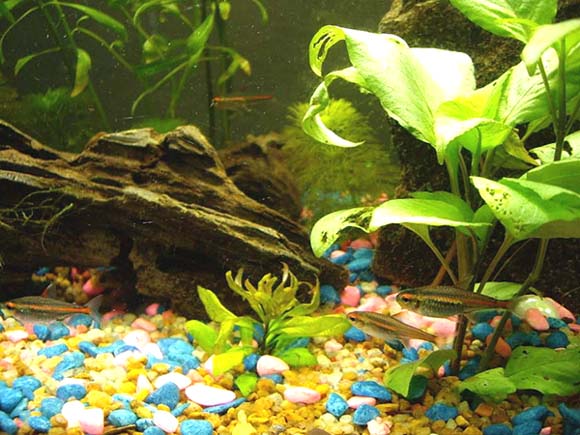 Here are some closeups of my baby Chinese Algae Eaters and some glowlites..
