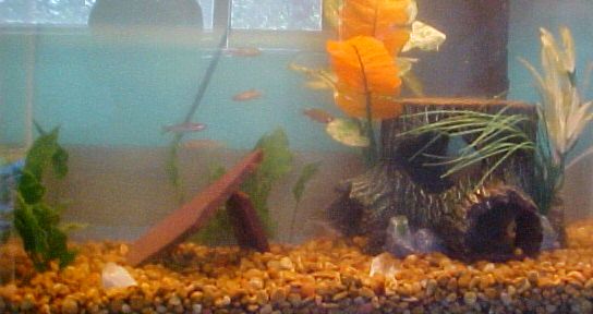 I just got back from the LFS and I made my own rock figure for my Danios to swim through. I bought the slate for $1.99/pound and it was like a half pound. It looks pretty good too.