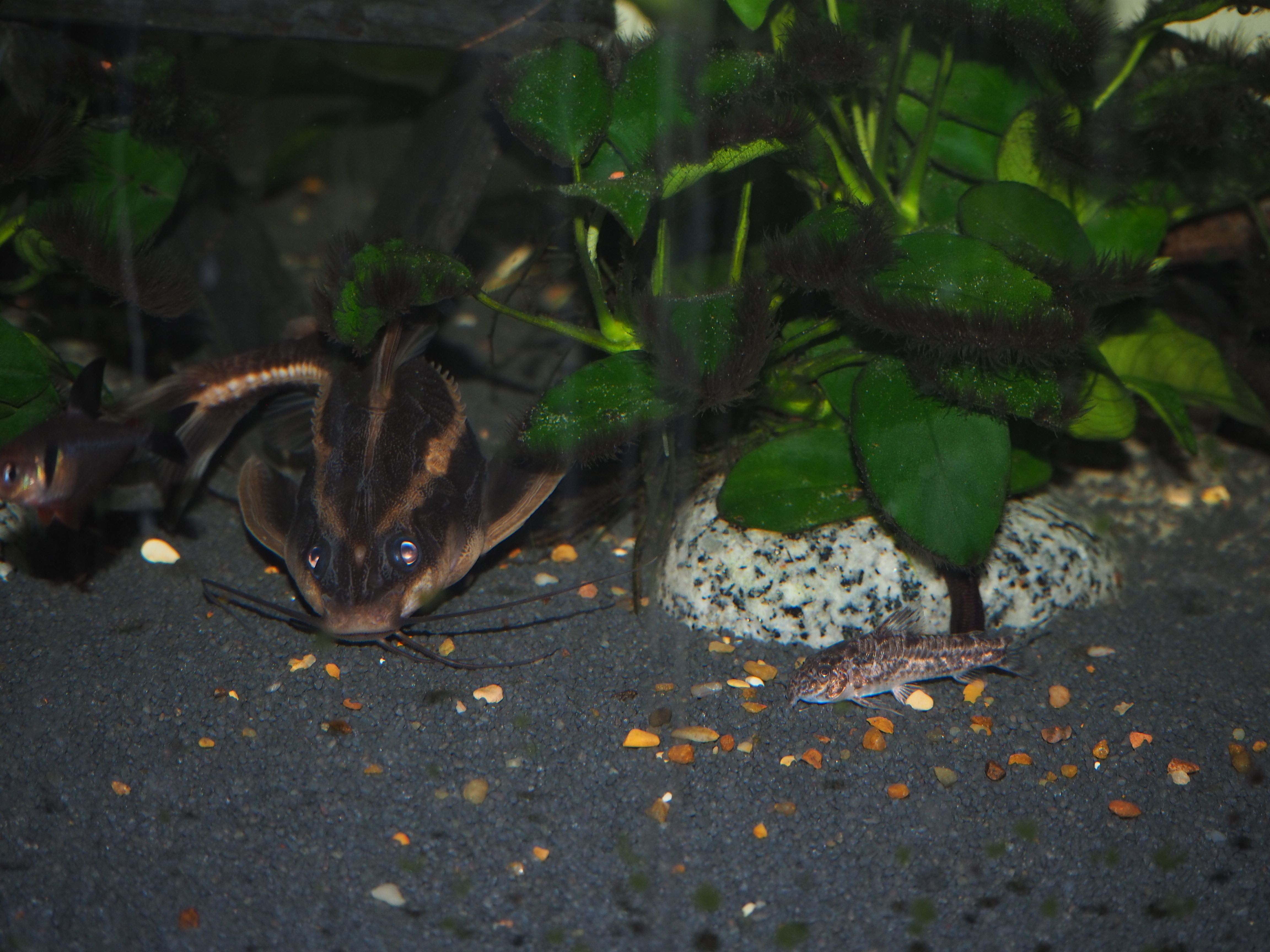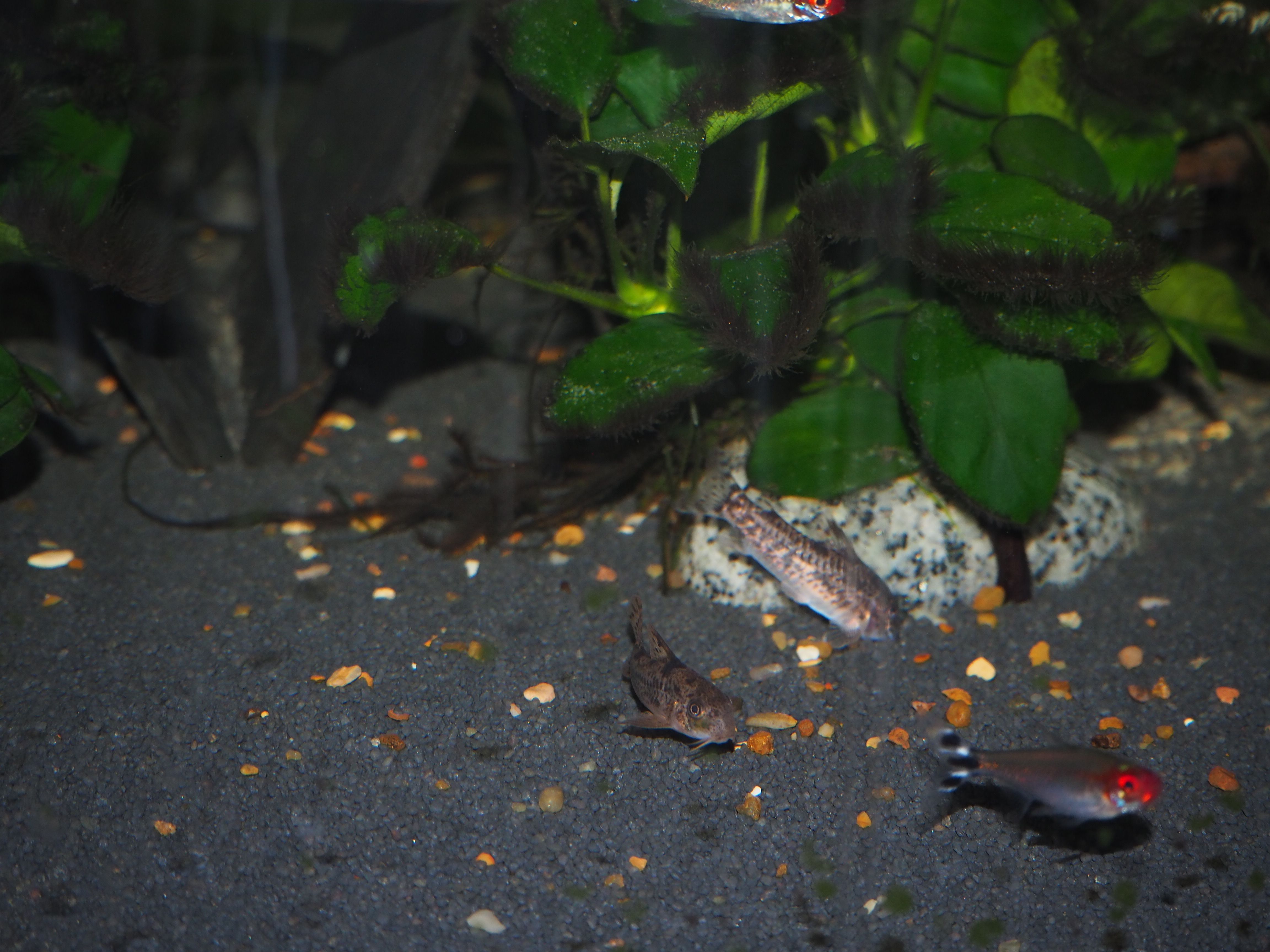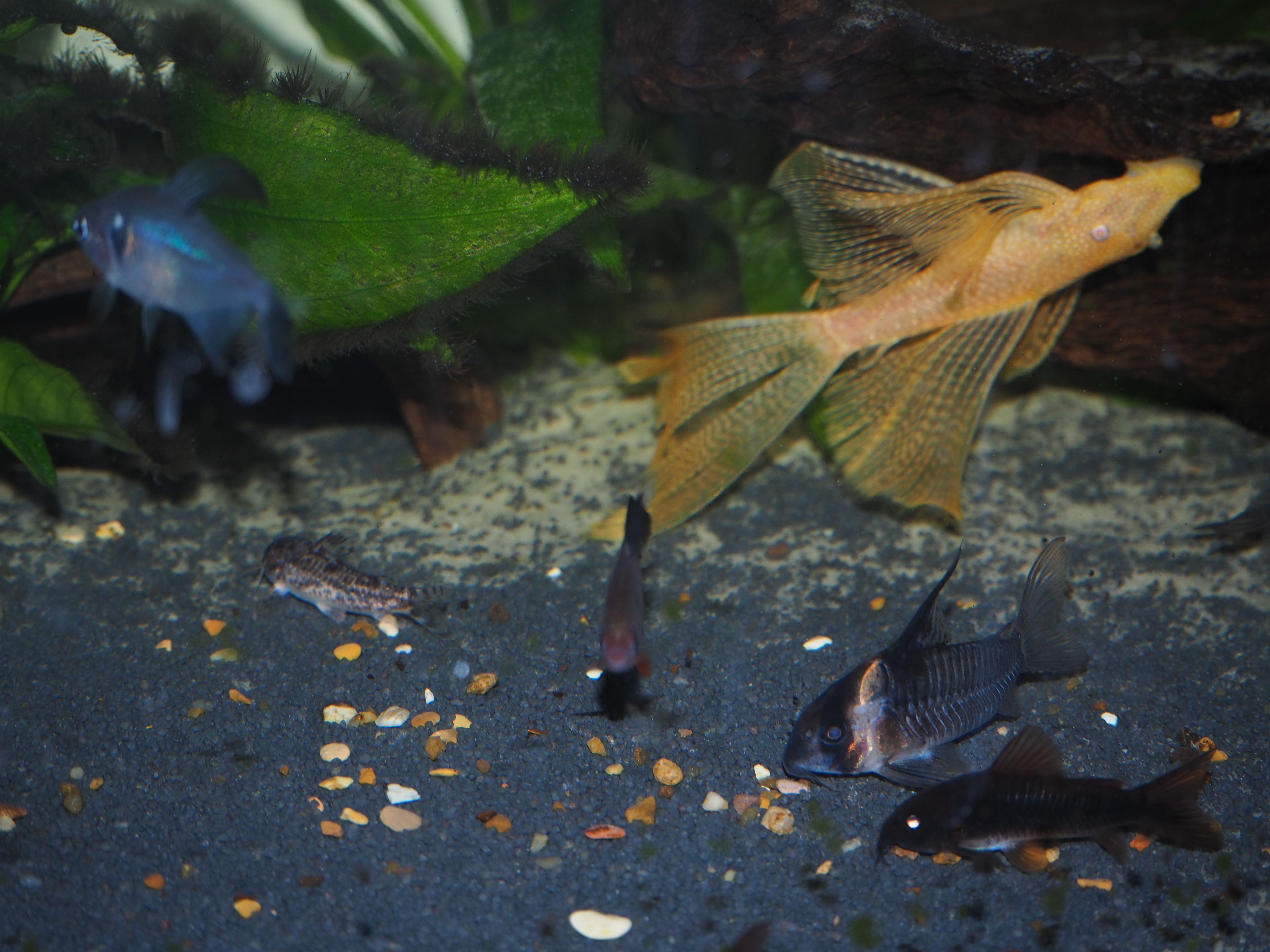 How do you get your lovely photos? Camera? Settings? I cannot seem to take good fish photos. I tried to take stills, but that was hopeless. These are screen shots from a video, which aren't great, and most of it looked blurry whenever you paused the video. The bottom two are corydoras carlae. I added the plec because she was sitting still for a moment.