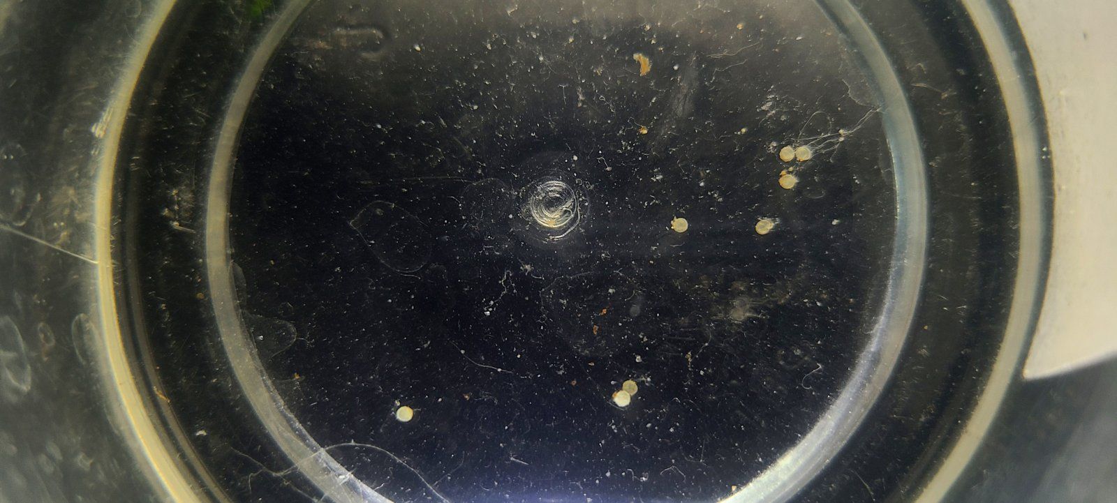 Specialized species of shrimp known to eat the unhealthy eggs but not healthy ones.