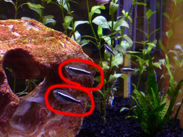 My 4 cardinals sadly died, and as for them, i got 4 black neon tetras from the lfs. I'm looking at them, and like they are huge. Two of them are really bigger than the other ones. Are these Black neons pregnant? Already? What should i do?