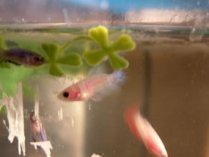 I think it may be because i had not changed any water - I have taken a new approach in the last few spawns of not touching it for the full two weeks, but with this many babies it may be pushing it so i added 2L today. They just started eating BBS in addition to the MW, but they HATE first bites, they will not even touch it