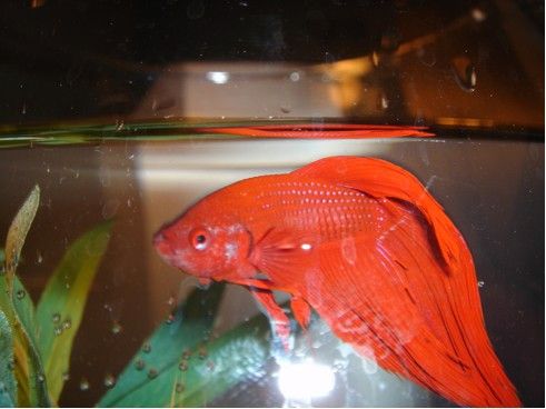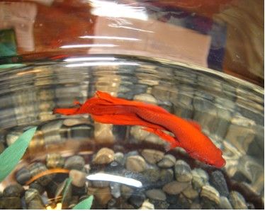 Red is gorgeous!! Congratulations! And your bowl is very nice. 2 gallons + is a good size for bettas, IMO.