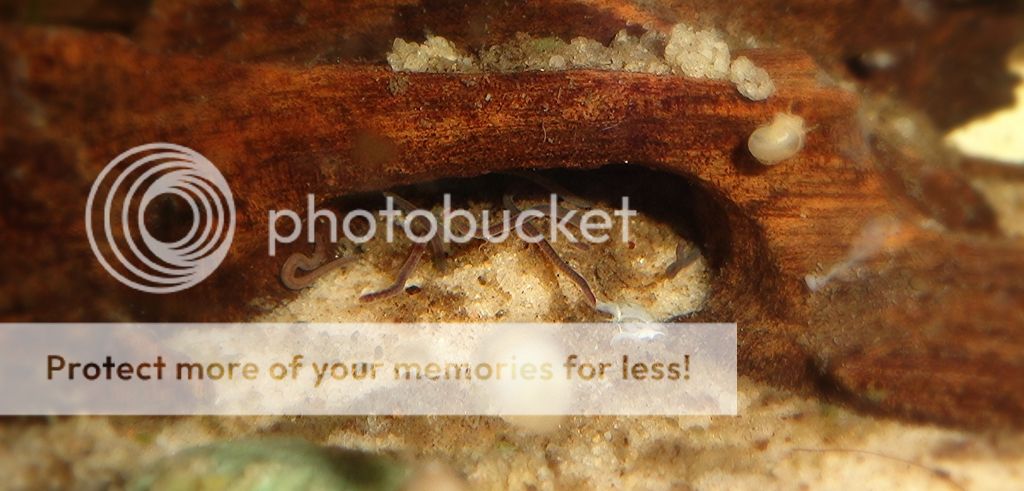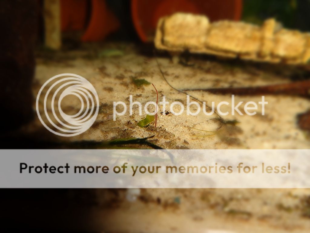 Since the macrostoma didn't really eat all the worms I put in the tank at the time, I left them overnight just incase they decided to eat them later on while I wasn't staring them down from outside the tank. The next morning, I didn't see them on the substrate any longer so I figured they had been eaten. Then the more I looked, I noticed one sticking up from the sand and then seen some more under a piece of wood.