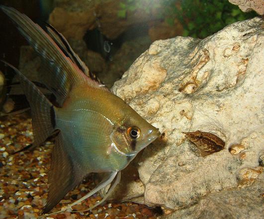 That's adorable!!! I just love that eel, though he is so strange looking. He seems so incredibly friendly and such in all your pics with him in them. I thought he was bigger than that too.. but your angel is probably just big. Does he always sleep in that hole?! Aww I just wanna snuggle him... kinda.