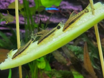 I keep mainly Corys and have only one ever jump out. The "hillstream" left under has a lower waterlevel so leopard danios stay in (hopefully)None of your tanks have top have you had issues with fishes jumping out? I removed the top from the 40B last year and so far 1 kubotai, 1 otto (very strange) and 1 blue eye forktail rainbow jumped out. I've removed the remaining forktail (never liked them) and gave the kubotai a long lecture. No clue why the otto jumped.