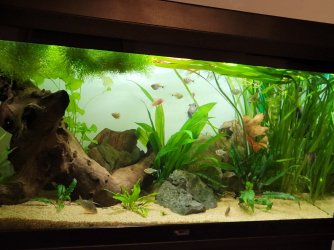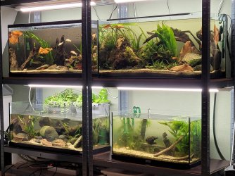 None of your tanks have top have you had issues with fishes jumping out? I removed the top from the 40B last year and so far 1 kubotai, 1 otto (very strange) and 1 blue eye forktail rainbow jumped out. I've removed the remaining forktail (never liked them) and gave the kubotai a long lecture. No clue why the otto jumped.My current 5 tanks. The 60 cm under right will be replaced by a new 80 cm tank.