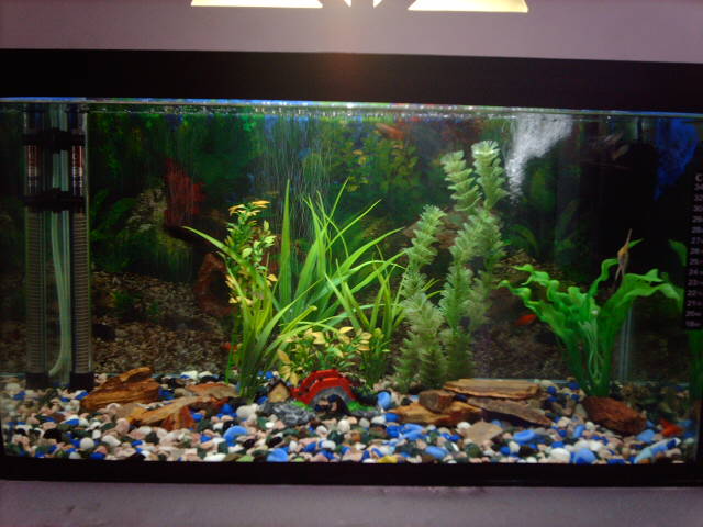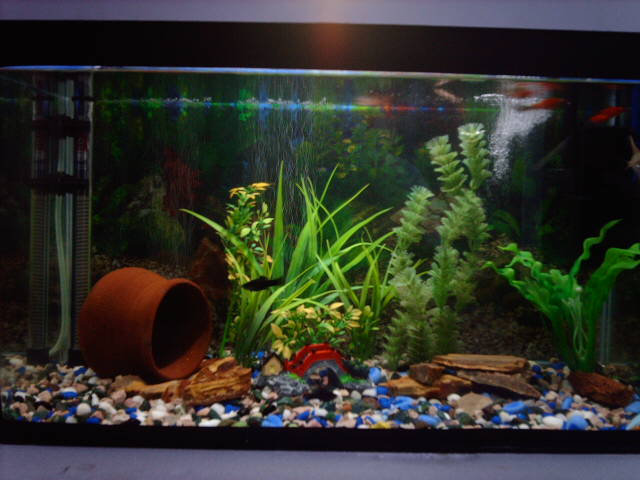 just looking at the pic enlargd, what fish is that in there, i see platys and an angel ? is your tank tall as angels will need a taller tank as they grow older or their top fins will bend