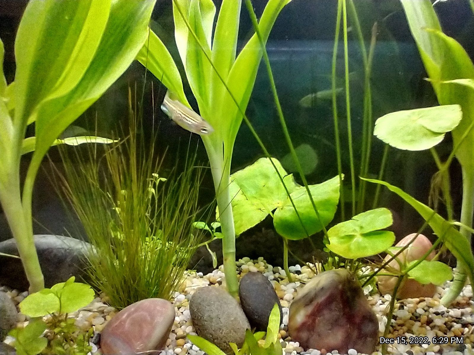 I have had my tank running since November. It is a small tank with adequate plants and three leopard danios. One nerites snail.